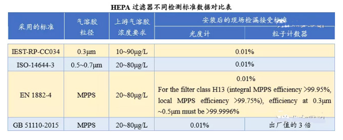 不同標(biāo)準(zhǔn)方法規(guī)定的掃描漏率基本≤0.01%,但實(shí)際上它們之間的完整性存在明顯差異。 只有通過 EN1822 標(biāo)準(zhǔn)測(cè)試的過濾器才能標(biāo)記為 H×× 或 U××。 IEST-RPCC034標(biāo)準(zhǔn)有自己的A、B、C……分類指標(biāo)。